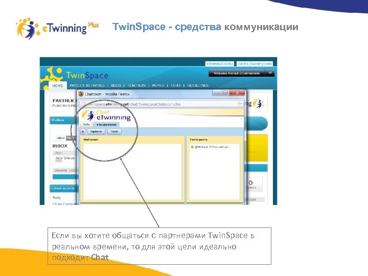 Twin. Space - средства коммуникации Если вы хотите общаться с партнерами Twin. Space в реальном времени, то для этой цели идеально подходит Chat
