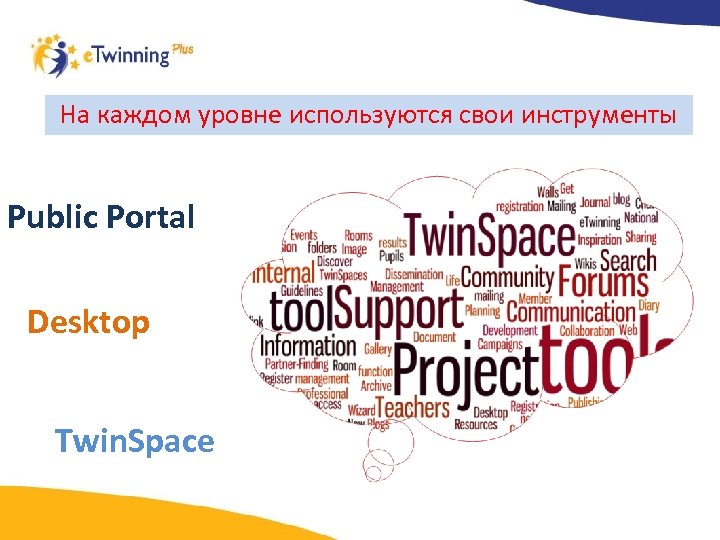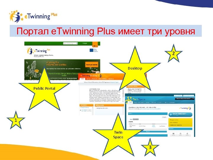 Портал e. Twinning Plus имеет три уровня 2 Desktop Public Portal 1 Twin Space 3