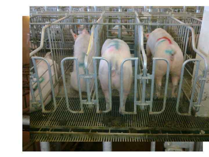 Секция осеменения • Контакт с хряком и стимуляция (дверцы в кормовом проходе) • Свиноматки/свинки заводской кондиции • Гигиена (полы) • Освещение (интенсивность и режим) • Свежий воздух • Отточенная техника менеджмента групп: отнятые свиноматки / новые свинки