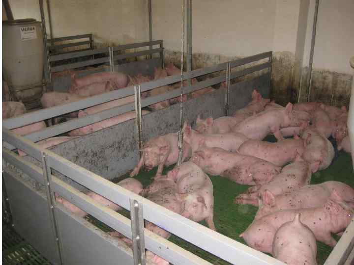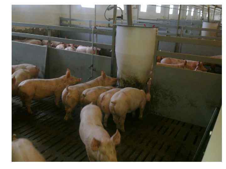 Откорм • • • С 69 (? ? ? ) до 181 (? ? ? ) дня Рост от 27, 3 до 123, 5 кг (не ремки!) ССП 860 г/день Потери 0, 8 % - выбраковки 1 % Сплошные стенки у станков (меньше циркуляции инфекции) Плотность Температурный режим Схема кормления Контроль воды • Ночная смена