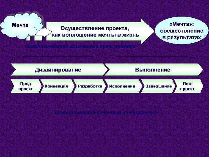 Менеджмент проектов и программ – это деятельность людей по осуществлению проектов/программ в человеческом сообществе в изменяющейся (в частности – рыночной) среде с целью изменения будущего путем создания новых позитивных Проект – это уникальная (по ценностей совокупности) человеческая деятельность по созданию новых ценностей будущего.