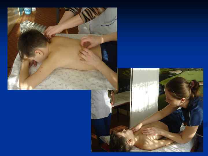 Массаж-это метод лечения и профилактики заболеваний, представляющий собой совокупность приемов дозированного методического воздействия на различные участки поверхности тела человека, которое производится руками массажиста или специальными аппаратами. При сколиозе рекомендуют поглаживание, растирание, разминание и вибрацию.