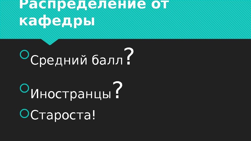 Распределение от кафедры Средний балл ? Иностранцы ? Староста!
