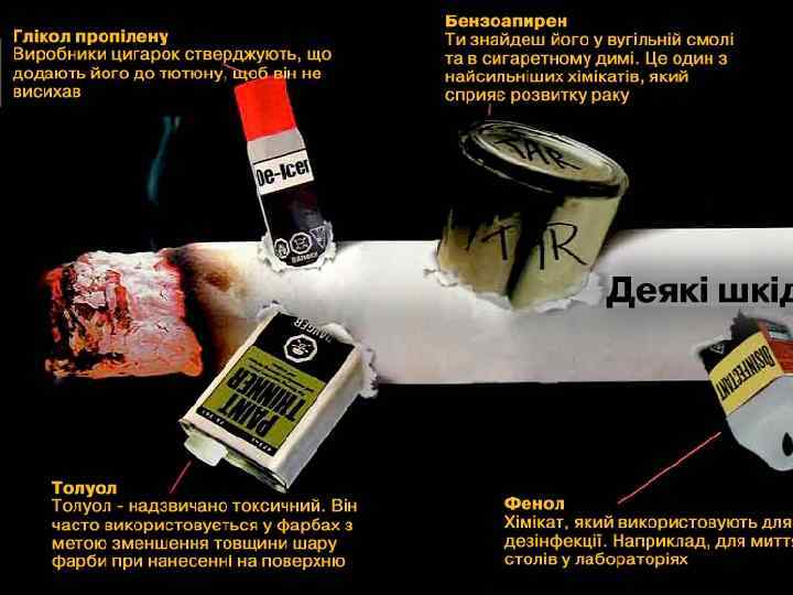 Состав табака Никотин Смола • Наркотик • Смертельная доза - 80 -120 мг • В пачке 100 мг • 5 сигарет убивают кролика • За год человек выкурива ет 30 г никотина • За год через легкие проходит 800 г смолы • Смола вызывает воспаление легких и рак Оксид углерода • Препятствует крови усваивать кислород • Разрушает стенки артерий Всего 1200 разных вредных веществ