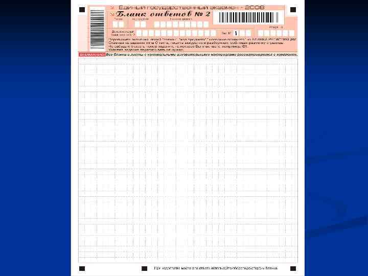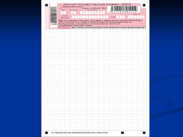 n При недостатке места для ответов на лицевой стороне бланка ответов № 2 участник ЕГЭ может продолжить записи на оборотной стороне бланка, сделав внизу лицевой стороны запись «смотри на обороте» . Для удобства все страницы бланка ответов № 2 пронумерованы и разлинованы пунктирными линиями «в клеточку» . n При недостатке места для ответов на основном бланке ответов № 2 участник ЕГЭ может продолжить записи на Дополнительном бланке ответов № 2, выдаваемом организатором в аудитории в случае требования участника при отсутствии места для ответа на основном бланке ответов № 2. В случае заполнения дополнительного бланка ответов № 2 при незаполненном основном бланке ответов № 2, ответы, внесенные на дополнительный бланк ответов № 2 оцениваться не будут.