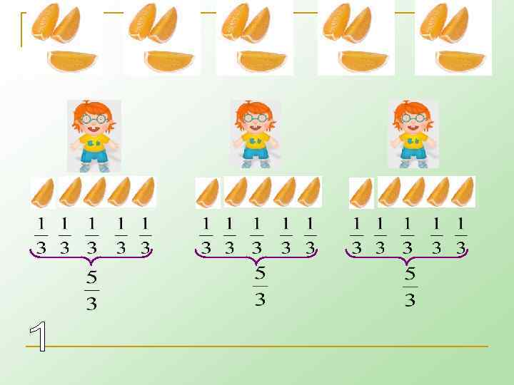 чтобы перейти от записи к записи , надо разделить 5 на 3. получим неполное частное 1 и остаток 2. число 1 дает целую часть, а остаток 2 – числит дробной части