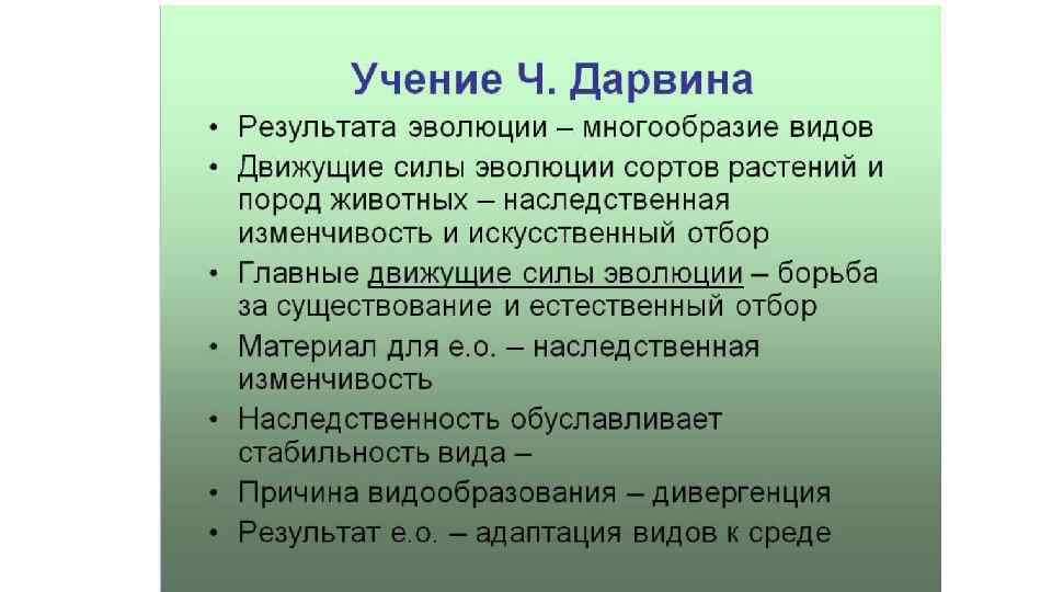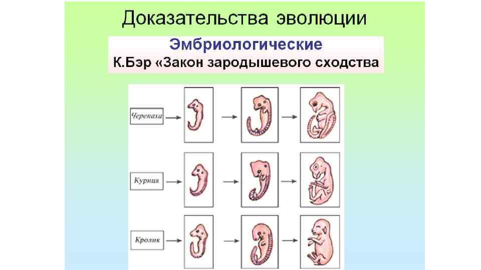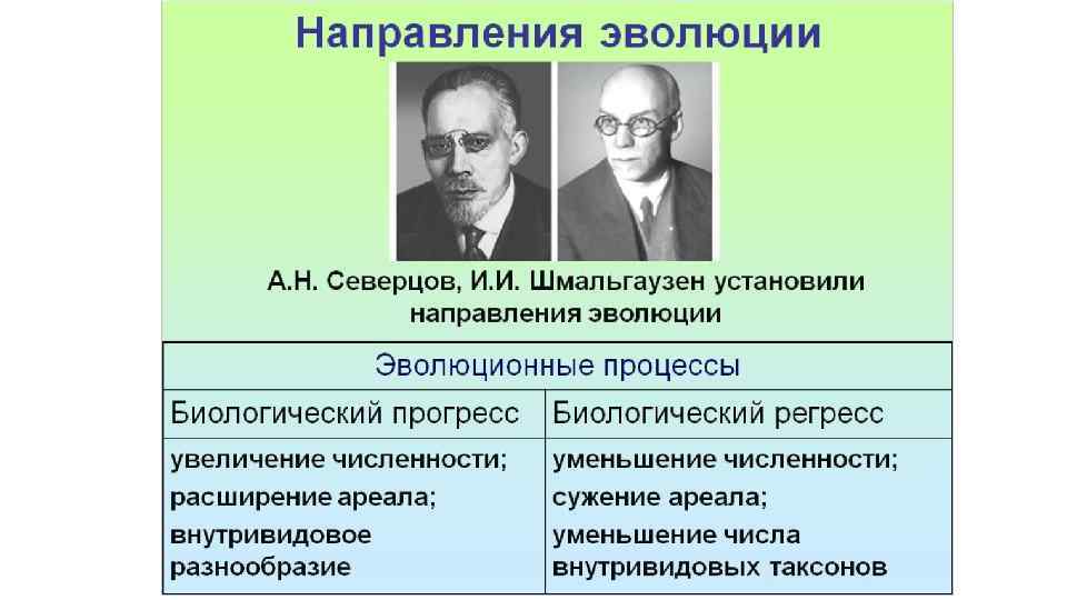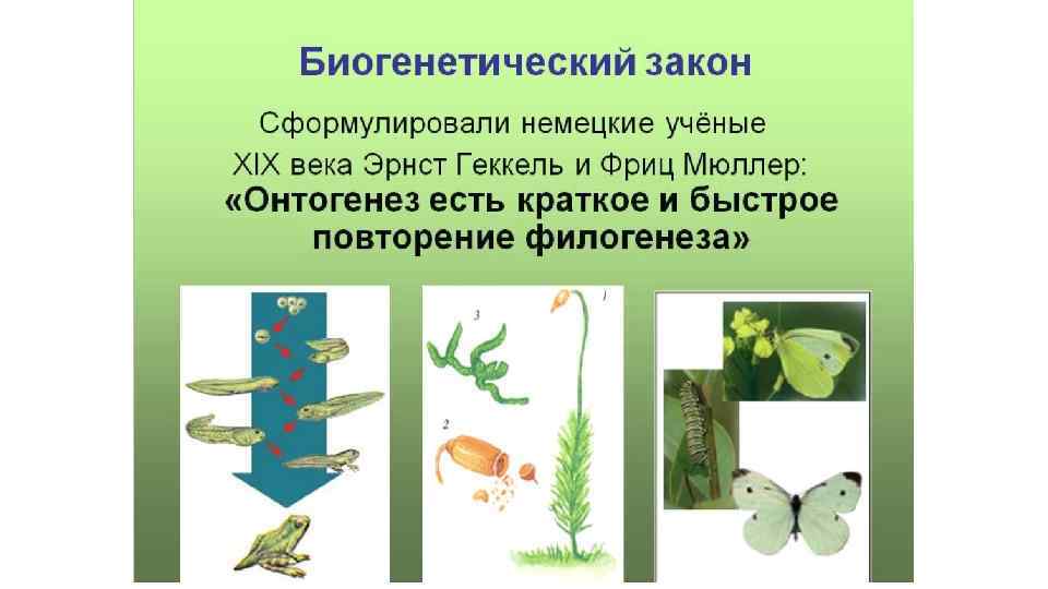 Правило адаптивной радиации (правило Г. Осборна): историческое развитие (филогенез) каждой группы организмов происходит путем разделения исходного ствола на несколько боковых ветвей, расходящихся в нескольких адаптивных направлениях. Правило чередования главных направлений эволюции (правило И. И. Шмальгаузена): в процессе эволюции происходит чередование ее основных направлений (ароморфозы сменяются идиоадаптациями). Биогенетический закон Геккеля–Мюллера: представляет собой краткое повторение филогенеза. онтогенез
