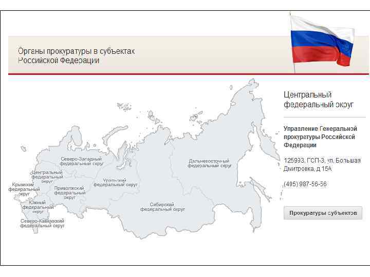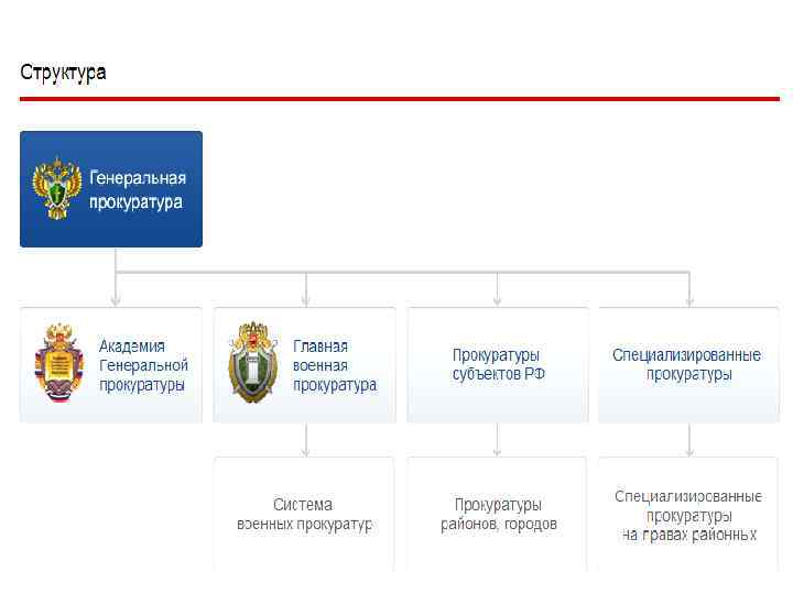 ПРОКУРАТУРА РОССИЙСКОЙ ФЕДЕРАЦИИ http: //genproc. gov. ru/ Нормативные правовые акты, регулирующие деятельность Прокуратуры РФ: ü Конституция РФ от 12 декабря 1993 г. (с учётом поправок, внесённых Законами РФ о поправках к Конституции РФ от 30. 12. 2008 № 6 -ФКЗ, от 30. 12. 2008 № 7 ФКЗ, от 05. 02. 2014 № 2 -ФКЗ, от 21. 03. 2014 № 6 -ФКЗ) : глава 7 «Судебная власть и прокуратура» (ст. 129) ü Федеральный закон РФ от 17 января 1992 г. № 2202 -1 -ФЗ (ред. от 04. 06. 2014) «О прокуратуре Российской Федерации» Генеральный прокурор РФ - Чайка Юрий Яковлевич