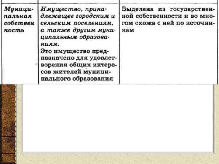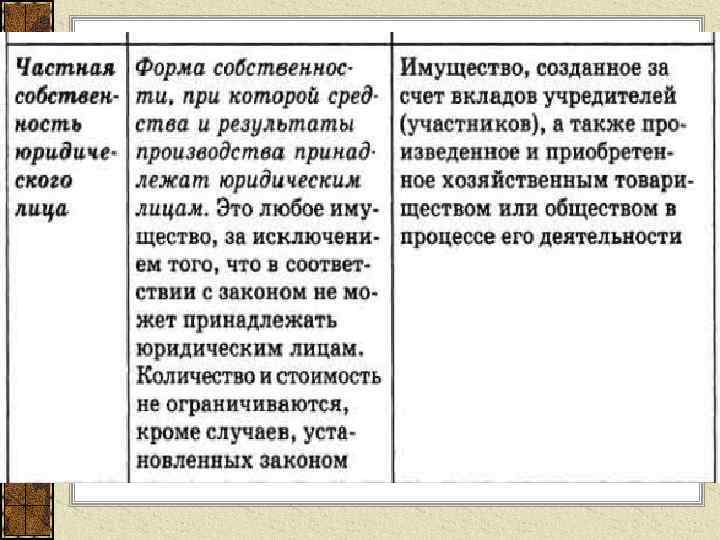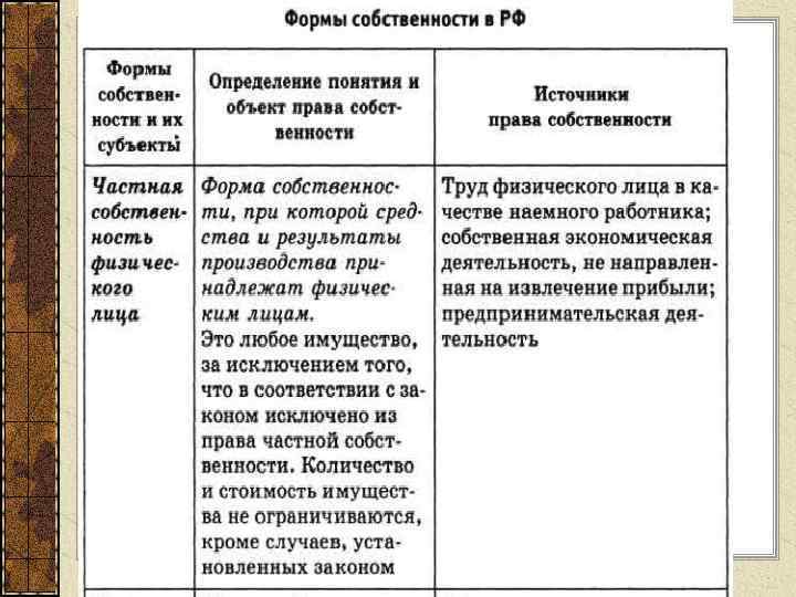 Формы собственности РФ: Частная собственность физического лица Частная собственность юридического лица Государственная собственность Муниципальная собственность
