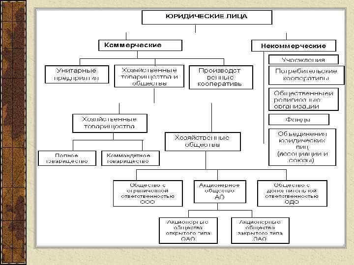 2. Физические и юридические лица Юриди ческое лицо - созданная и зарегистрированная в установленном законом порядке организация, которая имеет в собственности имущество и отвечает по своим обязательствам этим имуществом, (может от своего имени приобретать и осуществлять имущественные права, нести обязанности, быть истцом и ответчиком в суде) 2. Имущественная обособленность 1. Организационное единство • внутренняя структура 3. Самостоятельная гражданскоорганизации правовая ответственность • наличие органов управления 4. Выступление в • наличие учредительных гражданском обороте и судебных документов органах от своего имени