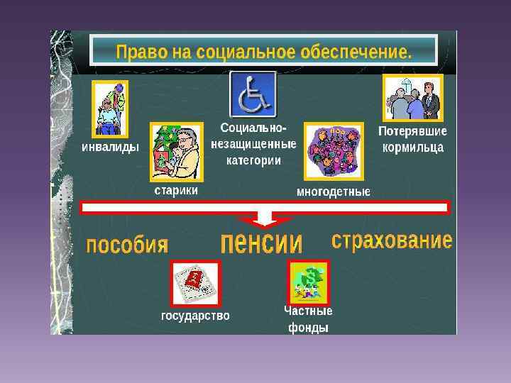 К таковым в настоящее время относят: • Нетрудоспособных граждан в отсутствие кормильца; • Ветеранов войны и труда; • Беременных женщин; • Семьи с детьми несовершеннолетнего возраста; • Лиц, имеющих статус безработных; • Лиц, имеющих статус вынужденных переселенцев; • Лиц, пострадавших от воздействия радиации;