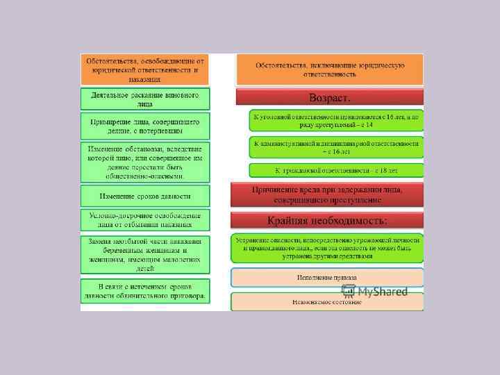 Основания освобождения от юридической ответственности Это все те обстоятельства, наличие которых в соответствии с законом исключает возможность применения мер юридической ответственности.