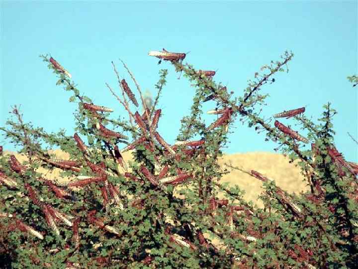 Саранча в Ветхом Завете Саранча неоднократно упомянута в Библии. Именно саранчу наслал Бог иудейский на Египет, чтобы фараон разрешил Моисею вывести свой народ из Египта (Исх. 10: 13). Эта была восьмая египетская казнь. Одно из наиболее опустошительных нашествий саранчи на Землю Израиля произошло, по-видимому, во времена пророка Иоэля, который посвятил ему большую часть своего пророчества. Описание Иоэлем развития этого насекомого, способа передвижения и наносимого ущерба, в точности соответствуют тому, что наблюдалось во время тяжелейшего нашествия саранчи на Палестину в 1915 г. , когда в большинстве районов страны урожай был полностью уничтожен.
