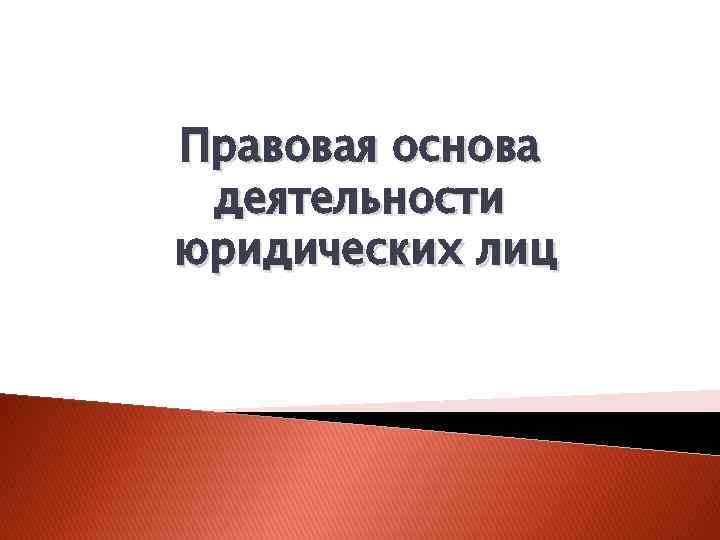Правовая основа деятельности юридического лица в России Нормативные правовые акты Российской Федерации локальные акты юридического лица