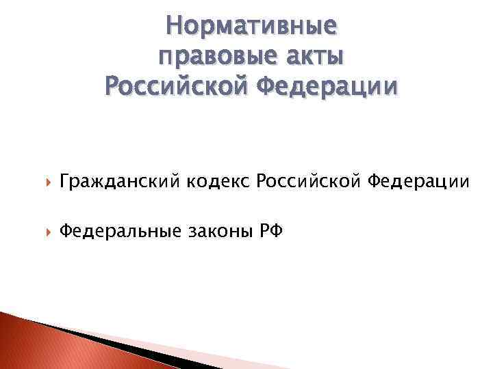 Нормативные правовые акты Российской Федерации Гражданский кодекс Российской Федерации Федеральные законы РФ