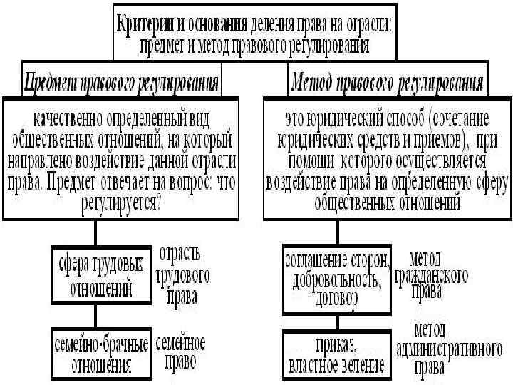 Предметом правового регулирования являются те общественные отношения, которые подвергаются правовой регламентации. Иными словами, каждая отрасль права "контролирует" свой особый участок общественной жизни, целый комплекс однородных общественных отношений, своеобразие которых позволяет отличать одну отрасль от другой.