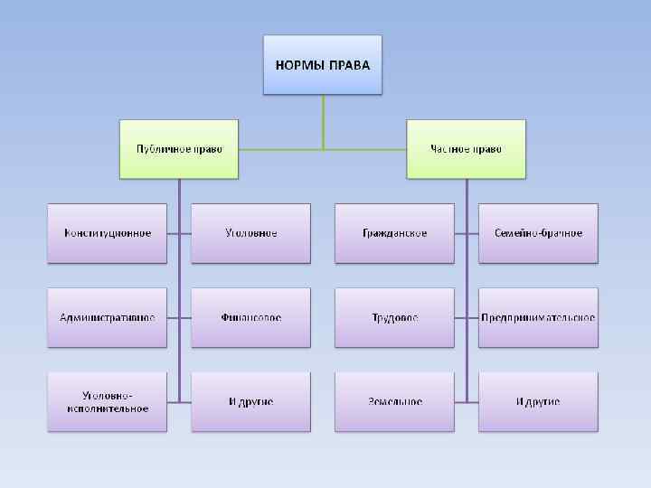 СИСТЕМА ПРАВА отражает взаимосвязь между действующими в государстве правовыми нормами, а также разделение норм права на относительно самостоятельные группы (их специализацию).