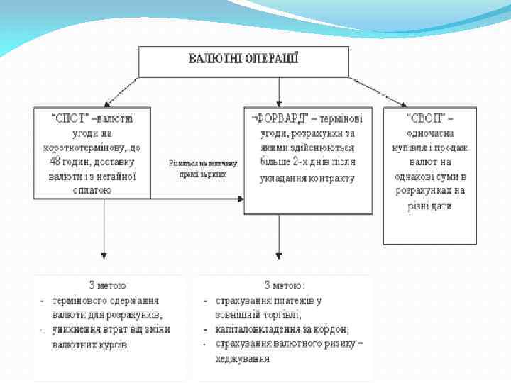 Валютний ринок як економічна категорія відображає певну сукупність відносин, пов'язаних зі здійсненням операцій з купівлі-продажу валютних цінностей та руху іноземних капіталів. Відповідно до Декрету Кабінету Міністрів України "Про систему валютного регулювання та валютного контрою" та Закону України "Про банки і банківську діяльність" валютні операції здійснюються банками та іншими фінансовими установами на основі ліцензії Національного банку.