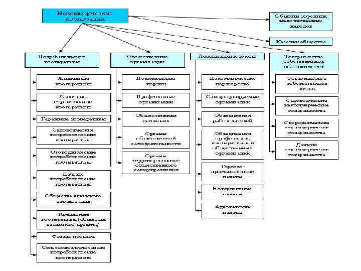 8. 9. 10. 11. Газпром, Сбербанк, Роснефть, Объединённая Государственная компания авиастроительная корпорация, Объединённая судостроительная корпорация, Российские железные дороги, Транснефть и др. Автономная некоммерческая Образовательная, научная, культурная АНО и т. д. организация Объединение потребительских кооперативов, общин Ассоциация (союз) коренных малочисленных народов и т. д. в целях защиты их интересов. Общественные и религиозные Политическая партия, общественное движение, коллегия организации (объединения) адвокатов и т. д. 12. Община коренных малочисленных народов Общины коренных малочисленных народов Севера, Сибири и Дальнего Востока Российской Федерации и т. д. 13. Казачьи общества Хуторские, станичные, городские, районные (юртовые), окружные (отдельские) и войсковые казачьи общества и т. д. Торгово-промышленная палата 15. Общество взаимного страхования 16. Товарищество собственников жилья Саморегулируемая организация арбитражных управляющих, саморегулируемых организации в области Саморегулируемая 17. связи, саморегулируемых организаций организация профессиональных участников рынка ценных бумаг, саморегулируемых организаций оценщиков и т. д. Отделение иностранной Например, отделение "Россия без нацизма" некоммерческой 18. Международного правозащитного движения "Мир без неправительственной нацизма" (Франция) и др. организации 14.