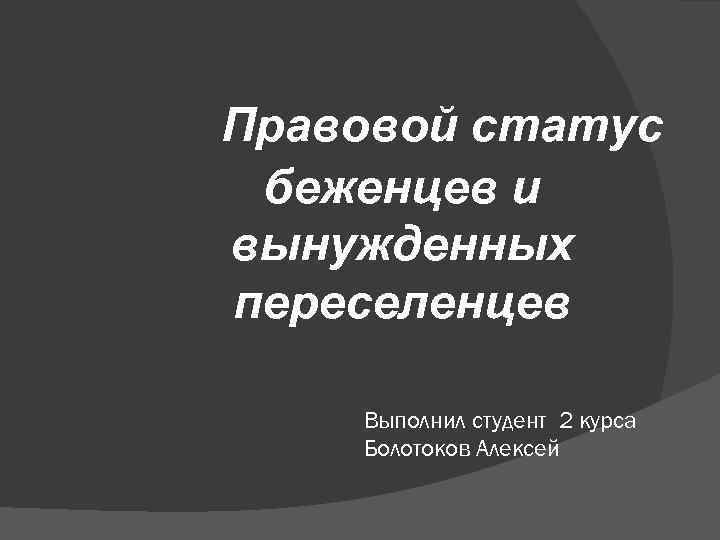 Правовой статус беженцев и вынужденных переселенцев Выполнил студент 2 курса Болотоков Алексей
