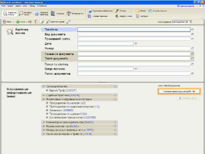 LEXPRO Состав базы данных «LEXPRO» (по состоянию на 30 сентября 2013 года): Общее количество документов — 8 995 719 Нормативные акты РФ и СССР — 184 798 Судебные акты — 5 820 727, в том числе: Акты высших судов — 162 012 Акты ФАС (все округа) и 20 апелляционных арбитражных судов — 1 313 960 Акты судов субъектов РФ — 4 344 755 Международные правовые акты — 5 598 Комментарии законодательства — 9 546 Формы документов — 1 545 Правовые акты субъектов РФ — 2 973 505