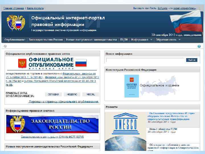 Законодательство России http: //pravo. msk. rsnet. ru ИПС «Законодательство России» является элементом информации, Государственной создаваемой государственной политики системы в в рамках области правовой реализации правовой информатизации Российской Федерации (Указ Президента Российской Федерации от 7 августа 2004 г. № 1013).