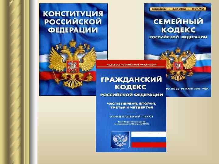 Семейный кодекс РФ Глава 3 Ст. 11. Порядок заключения брака 1. Заключение брака производится в личном присутствии лиц, вступивших в брак, по истечении месяца со дня подачи заявления в ЗАГС Ст. 12. Условия заключения брака 1. Для заключения брака необходимы взаимное добровольное согласие мужчины и женщины, вступающих в брак, и достижение ими брачного возраста Ст13. Брачный возраст: 1. Брачный возраст устанавливается с 18 лет