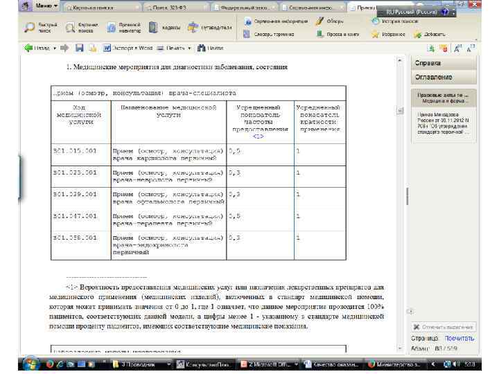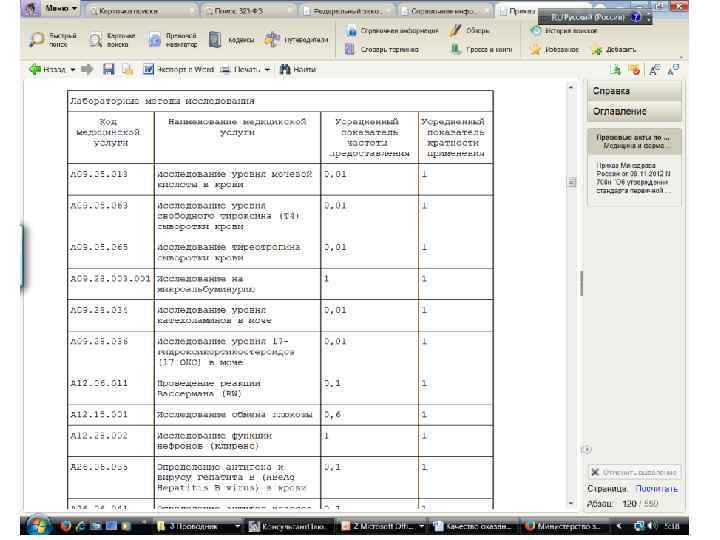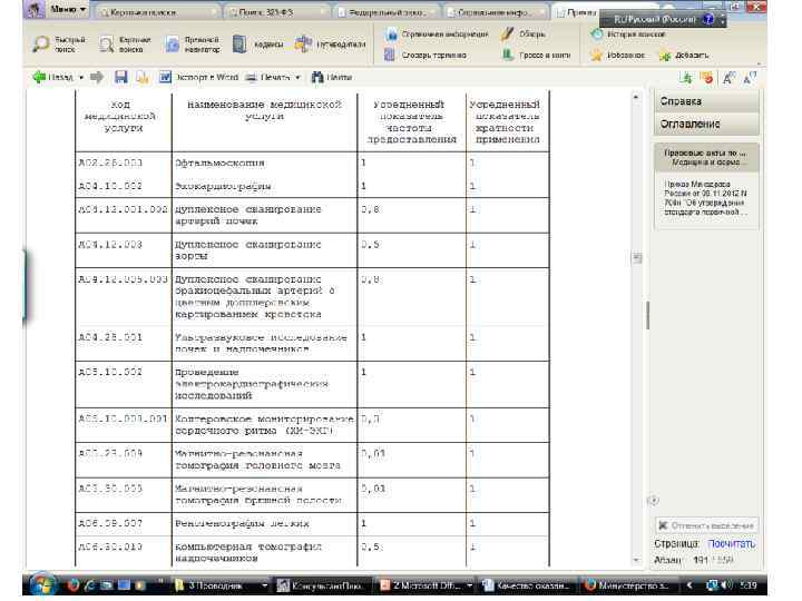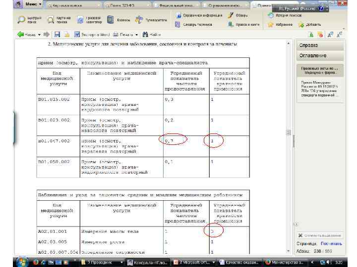 Приказ Минздрава России от 21 декабря 2012 г. N 1340 н «Об утверждении порядка организации и проведения ведомственного контроля качества и безопасности медицинской деятельности» • 16. При проверке соблюдения медицинскими организациями стандартов медицинской помощи оцениваются: – 1) соблюдение выполнения медицинских услуг в зависимости от усредненных показателей частоты и кратности их применения, обоснованность назначения медицинских услуг, имеющих усредненную частоту менее 1, 0, полнота выполнения услуг с усредненной частотой 1, 0; – 2) обоснованность и полнота назначения лекарственных препаратов, компонентов крови; – 3) обоснованность и полнота назначения имплантируемых в организм человека медицинских изделий; – 4) обоснованность и полнота назначения видов лечебного питания, включая специализированные продукты лечебного питания; – иные положения, исходя из особенностей заболевания (состояния).