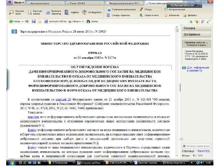 Важно не просто согласие • Условия: – а) предварительность согласия; – б) добровольность согласия; – в) информированность согласия; – г) получение в доступной форме полной информации о состоянии здоровья; – д) дача согласия лично надлежащим лицом.