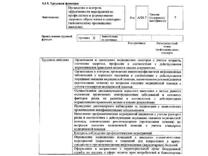 Для ТФ: Организация и проведение санитарно-противоэпидемических (профилактических) мероприятий • Трудовые действия – Оценка информации о санитарно-эпидемиологической обстановке – Информирование органов государственной власти, органов местного самоуправления и их должностных лиц, медицинских организаций, населения о санитарно-эпидемиологической обстановке, в том числе о подозрении на инфекционные, массовые неинфекционные заболевания – Выявление и госпитализация больных – Проведение экстренной личной профилактики и профилактики граждан по эпидемиологическим показаниям – Организация эпидемиологического расследования с целью установления причин и условий возникновения инфекционного и неинфекционного заболевания, а также выявления лиц, контактировавших с больными и (или) подозрительными на болезнь (заражение) – Установление медицинского наблюдения на срок инкубационного периода за лицами, подвергшимися риску заражения, обследование лиц, подвергшихся риску заражения – Организация подготовки медицинских организаций к дополнительному развертыванию коек, провизорного отделения – Создание резерва медикаментов, средств экстренной профилактики, дезинфектантов, средств индивидуальной защиты (персонал, группы риска) – Организация вакцинации (при необходимости)