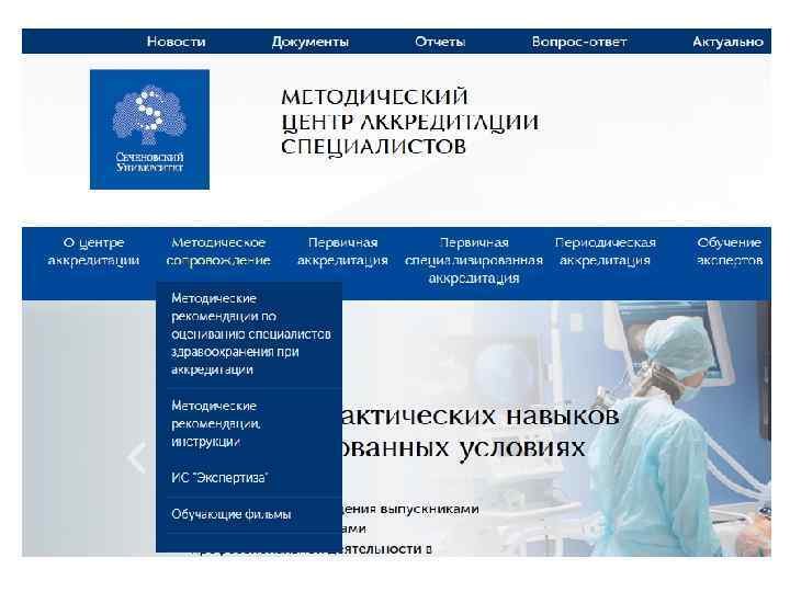 В настоящий момент • Утвержден Приказ № 334 н от 02/06/2016 которым вводится «Положение об аккредитации специалистов» зарегистрировано Минюстом 16/06/2016 № 42550 • Там указано: – Аккредитация специалистов проводится в помещениях образовательных и (или) научных организаций, реализующих программы медицинского (фармацевтического) образования, организационно-техническое оснащение которых обеспечивает возможность оценки соответствия лица, получившего медицинское, фармацевтическое или иное образование, требованиям к осуществлению медицинской деятельности по определенной медицинской специальности либо фармацевтической деятельности (далее - образовательные и (или) научные организации).