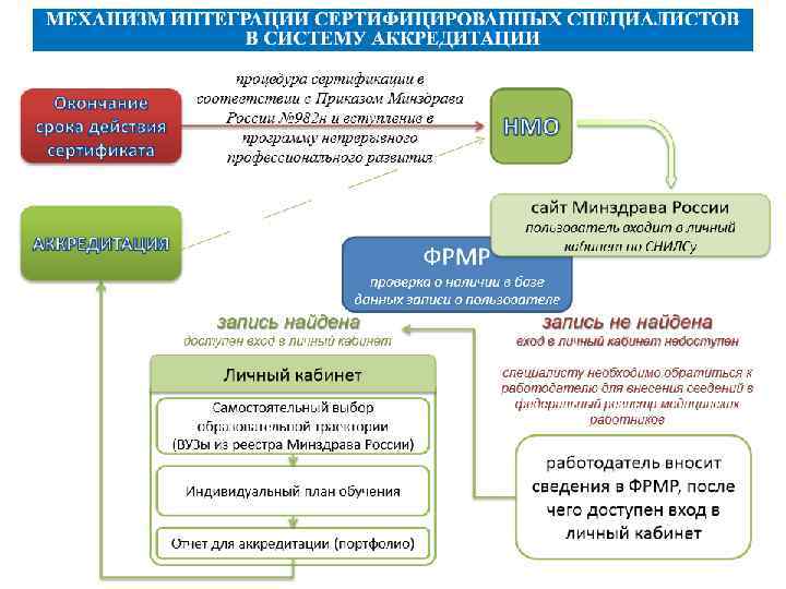 Важные изменения • Переход от сертификации специалистов, выполняемой образовательными организациями (Приказ 982 н), к аккредитации, организуемой и выполняемой под контролем Минздрава России (Приказ 334 н) • Сертификация и аккредитация специалиста – доступ к медицинской деятельности, т. е. аналог независимой оценки квалификаций – Независимый контроль качества