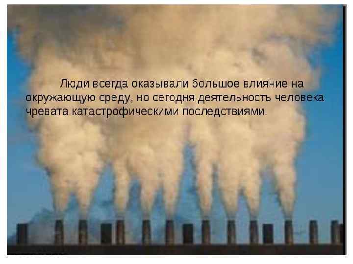 меры, предназначенные для ограничения отрицательного влияния человеческой деятельности на природу: • Ограничение выбросов в атмосферу и гидросферу с целью улучшения общей экологической обстановки. • Создание заповедников, национальных парков с целью сохранения природных комплексов. • Ограничение ловли рыбы, охоты с целью сохранения определённых видов. • Ограничение выброса мусора.