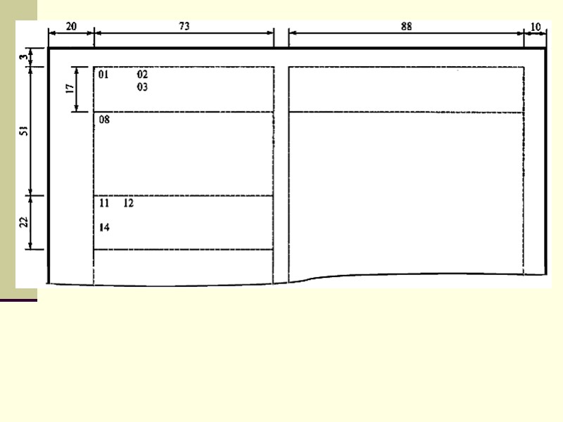 ОБЩИЙ БЛАНК Постоянные реквизиты 01,02 или 03 08 – наименование организации 14 – место составления или издания документа Ограничительные отметки для верхних границ зон расположения реквизитов 11 – дата документа 12 – регистрационный номер документа
