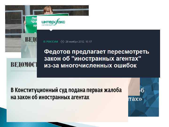 Мнения «Прямой вызов для тех, кто хочет свободно осуществить свое право на свободу ассоциации» (Комитет против пыток) Европарламент выразил разочарование российским Законом и призвал власти России прекратить регистрацию НГО как «иностранных агентов» Отрицательное Закон полностью воспроизводит положения американского Закона FARA, из чего, по их мнению, следует соответствие российского Закона международным демократическим нормам. Попытки обнаружить в словосочетании "иностранный агент" отрицательные контексты, сложившиеся в советский период, на взгляд некоторых экспертов, лишены конституционноправовых оснований. Положительное