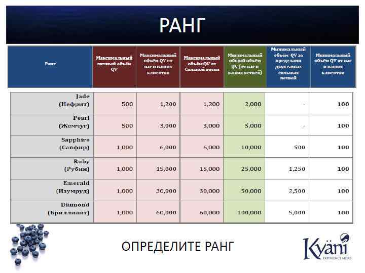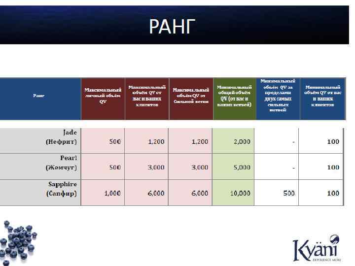 Pre LAUNCH GERMANY 2012 Маркетинг план ДВОЙНОЙ Дистрибутор Гранат НЕФРИТ ЖЕМЧУГ САПФИР Ранг Личный объем Сума всех ног Сильная нога Сумма второй ноги Сумма слабой ноги Командный бонус Командныйбонус Сильная нога Сумма второй ноги Сумма слабой ноги Бонус быстрый старт Бонус Динамичное продвижение Бонус за достижение ранга Автомобильная программа Бриллиантовый пул (фонд) 1, 5% Пул Красных Бриллантов 0, 5% РУБИН ИЗУМРУД ГОЛУБОЙ зеленый пурпурный к РАСНЫЙ КРАСНЫЙ БРИЛ. . АНТ БРИЛЛИАНТ БРИЛЛ. . НТ БРИЛЛИАНТ