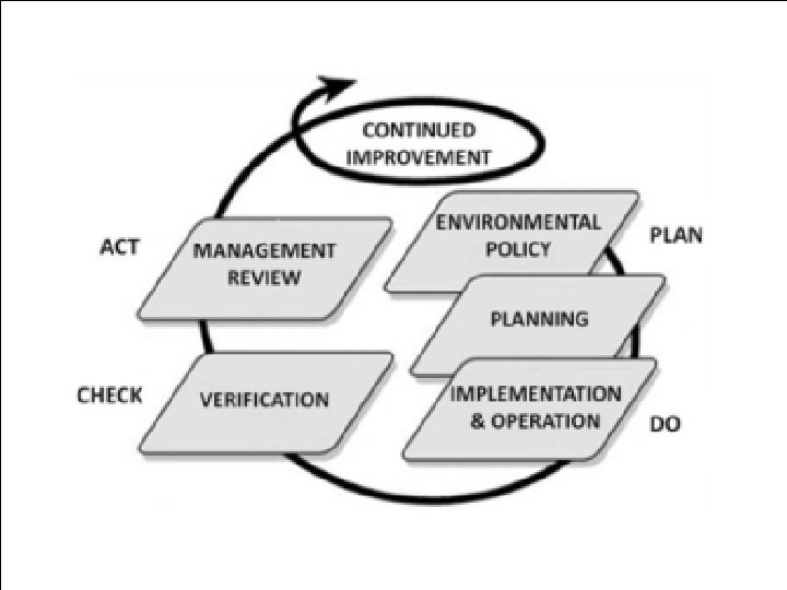 Okoljsk a politika planiran je ISO 140001 Vodstv eni pregled i Implementac ija in delovanje Preverja nje in korekt. ukrepi