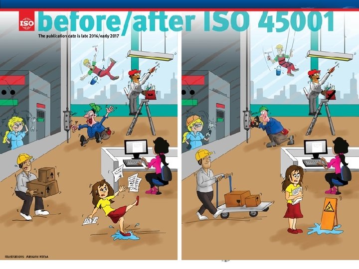 ISO 45001, eden svetovno zelo pričakovanih standardov za zdravje in varnost (OHS) pri delu, je že bil odobren kot osnutek mednarodnega standarda. ISO 45001 bo predvidoma objavljen kot mednarodni standard, konec leta 2016 / začetek leta 2017. ISO 45001 temelji na skupnih elementih, kot jih najdemo v vseh standardih sistemov vodenja ISO. Predstavlja visoko stopnjo združljivosti z novimi različicami ISO 9001 - Kakovost sistemov za upravljanje in ISO 14001 - sistemov ravnanja z okoljem. Uporablja model Plan-Do-Check-Act (PDCA), ki zagotavlja okvir za organizacije glede načrtovanja, kaj morajo uvesti, da bi zmanjšali tveganje poškodb. Ukrepi bi morali odvrniti vse pomisleke, ki lahko vodijo do dolgoročnih zdravstvenih težav in odsotnosti z dela, kot tudi vse tiste, ki povzročajo nesreče. Vsakih 15 sekund na svetu umre delavec od nesreče, povezane z delom ali poklicno boleznijo, in 153 ljudi doživi poškodbe, povezane z delom. To predstavlja veliko breme za organizacije in družbo kot celoto, ki ga predstavlja več kot 2, 3 milijona smrti na leto, da ne omenjamo več kot 300 milijonov nesreč brez smrtnih izidov. Z ISO 45001 bo svet bližje do trdnega in učinkovitega sklopa postopkov za izboljšanje varnosti pri delu v globalnih dobavnih verigah. Zasnovan je tako, da pomaga organizacijam vseh velikosti in panog in se pričakuje, da bo v prihodnosti prispeval k zmanjšanju poškodb pri delu in bolezni po vsem svetu. Izvajanje sistema vodenja varnosti in zdravja pri delu pomaga organizacijam k zmanjšanju števila nesreč in slabega zdravstvenega stanja. Z njegovo pomočjo naj bi se ustvarila ali pa dvignila kultura odnosa do ljudi v organizacijah, zaposleni naj bi prepoznali, da so potrebni in spoštovani. Zmanjšale naj bi se grozljive zgodbe v medijih o slabem vodenju varnosti in zdravja pri delu, ki pripelje do