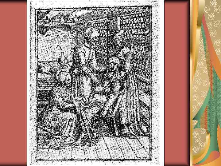 Период Феодализма Византия –основана высшая школа где изучалась медицина. Орибазий (325 400 г. н. э. ) описал строение половых органов Павел Эгинский–описал «Правила» , как поступать врачу в случае трудных родов Ананий Широкаци (армянский врач) – указание о выслушивании плода Лафранки – первый применил шов на рану живота и кишок (шов скорняка)