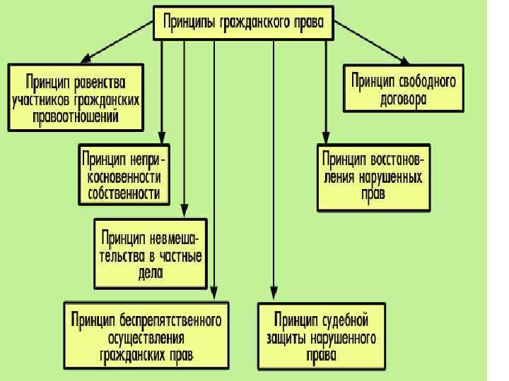 Основы гражданских правоотношений Равенство участников Неприкосновенность собственности Свобода договора Невмешательство в частные дела Беспрепятственное осуществление прав Восстановление нарушенных прав Судебная защита