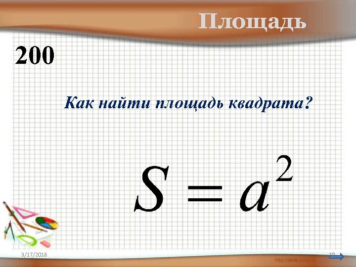 Площадь 200 Как найти площадь квадрата? 3/17/2018 10