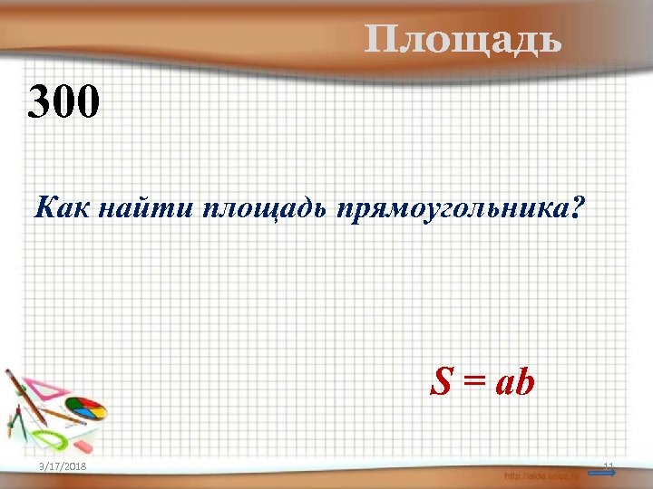 Площадь 300 Как найти площадь прямоугольника? S = аb 3/17/2018 11
