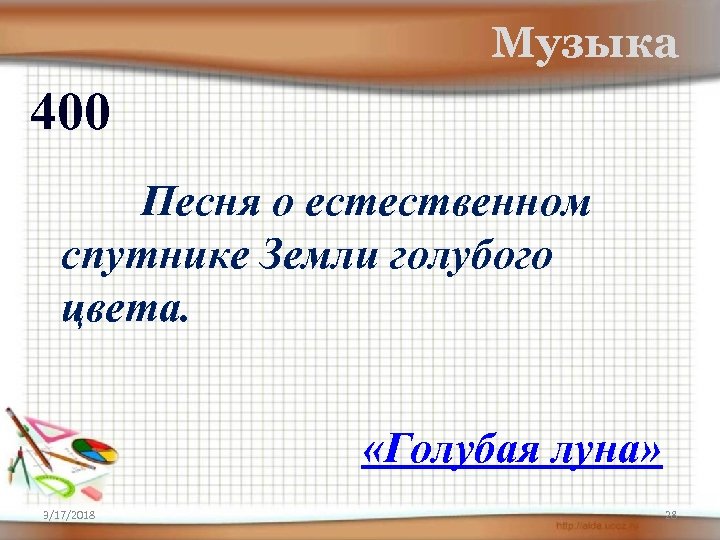 Музыка 400 Песня о естественном спутнике Земли голубого цвета. «Голубая луна» 3/17/2018 28