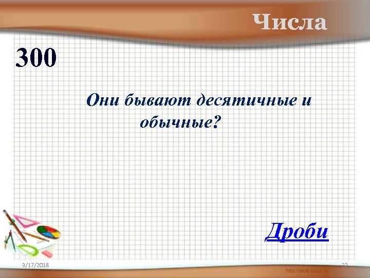 Числа 300 Они бывают десятичные и обычные? Дроби 3/17/2018 32