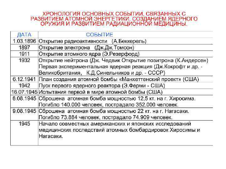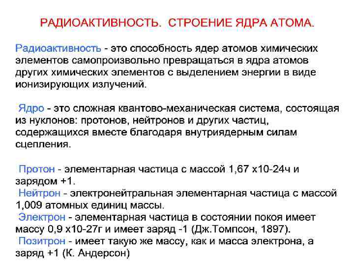 План лекции: • • История развития радиационной медицины как науки и ее связь с другими дисциплинами. Краткие сведения о развитии атомной энергетики и создании ядерного оружия. События, повлиявшие на развитие радиационной медицины. Основные источники ионизирующих излучений. Радиоактивность, дозиметрия, величины и единицы измерения в радиационной медицине