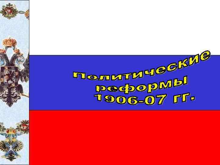 Система управления. Система Госуправления Российской империи. Россия была абсолютной наследственной монархией. Императору принадлежали все вет ви власти. Жители России были его подданными. Гербом государства был двуглавый орел, Гимн- «Боже, царя храни» , флаг-белосине красный. Одновременно существовал императорский флаг-бело-желто-черный.