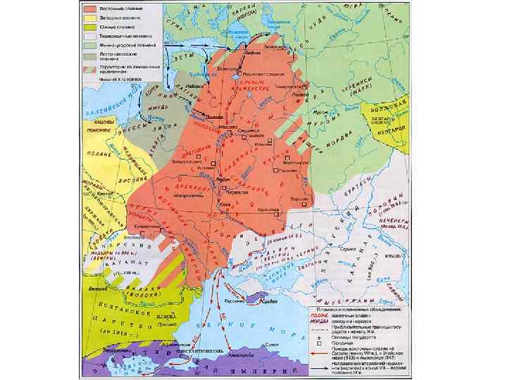 Образование древнерусского государства. В 879 г. в Новгороде умер Рюрик и новым князем становится его родственник Олег. В 882 году он собрал большое войско и двинулся в поход на юг. По пути он подчинил себе кривичей. Князь Олег и Игорь