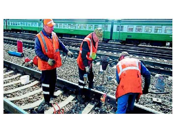 РАБОТА С РЕЛЬСАМИ - - Подготовка рельсов к укладке в путь: входной контроль в пунктах поступления рельсов с металлургических комбинатов; сварка новых рельсов в рельсовые плети; изготовление высокопрочных изолирующих стыков; изготовление рельсов нестандартной длины. Работа с рельсами в пути: сварка рельсов в плети длиною более стандартной; профильное шлифование рельсов; восстановление целостности рельсовых плетей в местах наличия дефектов; лубрикация рельсов; восстановление профиля рельсов наплавкой. Восстановление рельсов в заводских условиях: репрофилирование рельсов; сварка старогодных рельсовых плетей; изготовление мерных старогодных рельсов; изготовление рельсов переходного профиля.