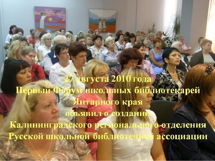 Калининградское региональное отделение РШБА представляет интересы самой западной библиотечной сети России, объединяющей 168 школьных библиотек Калининградского региона.