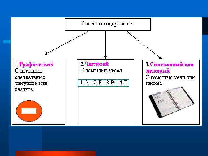 Способ кодирования информации зависит от: l цели кодирования; l условий; l средств для кодирования; l способа обработки информации